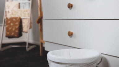 Bewahren Sie schmutzige Windeln in einem geschlossenen Windelbehälter auf. Sie können sie auch in unserem Wäschenetz aufbewahren und einfach in die Waschmaschine werfen. Wir empfehlen, schmutzige Windeln nicht länger als 3 Tage aufzubewahren.
